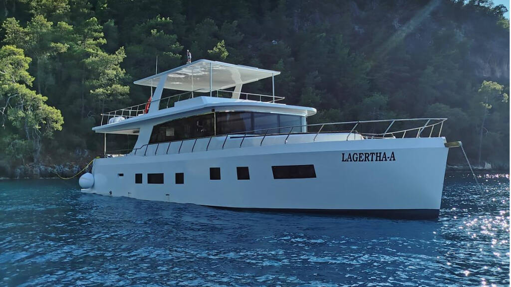 Luxury motor yacht MY Lagertha Lagertha, built in 2025 lies in the Göcek, Aegean, Turkey. It has 4 cabins, accommodate 8 people and has 4 toilets. Bed linen and kitchen equipment are included in the price.