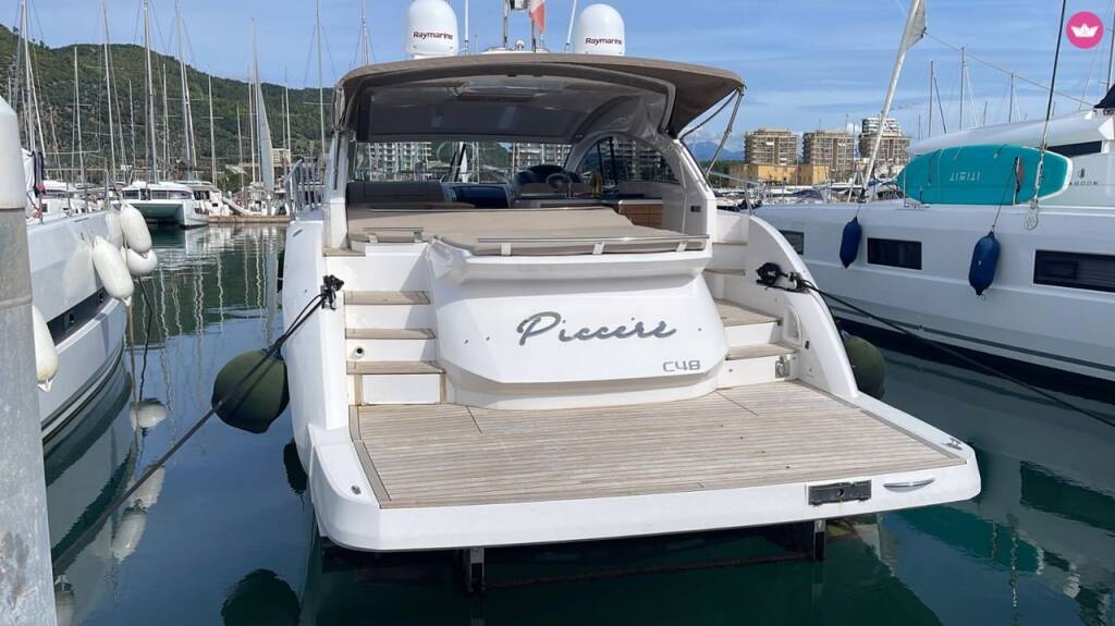 Motor yacht Sessa C48 Piccere, built in 2021 lies in the Marina D'Arechi, Campania, Italy. It has 2 cabins, accommodate 4 + 2 people and has 2 toilets. Bed linen and kitchen equipment are included in the price.