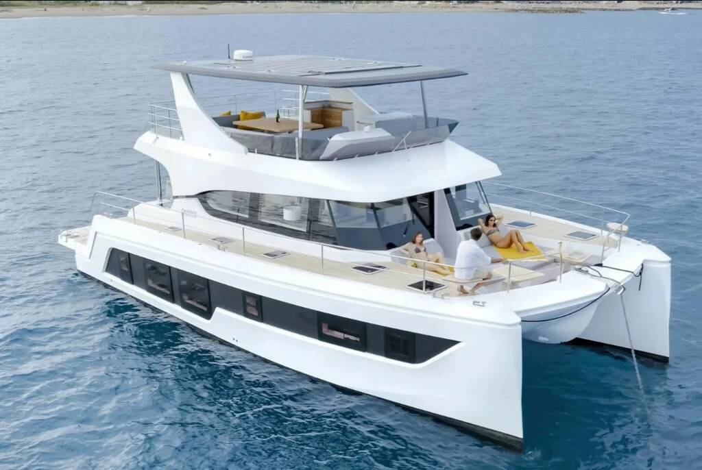 Power catamaran Aventura 50 Kamchatka, innebygd 2021 ligger i Athens, Alimos marina, Athens area/Saronic/Peloponese, Hellas. Det har 4 + 1 hytter, imøtekomme 8 + 1 mennesker og har 4 + 1 toaletter. Sengetøy og kjøkkenutstyr er inkludert i prisen.