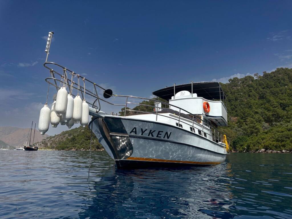 Gulet Ayken Ayken, innebygd 2023 ligger i Marmaris, Netsel Marina, Aegean, Tyrkia. Det har 3 hytter, imøtekomme 6 + 2 mennesker og har 3 toaletter. Sengetøy og kjøkkenutstyr er inkludert i prisen.