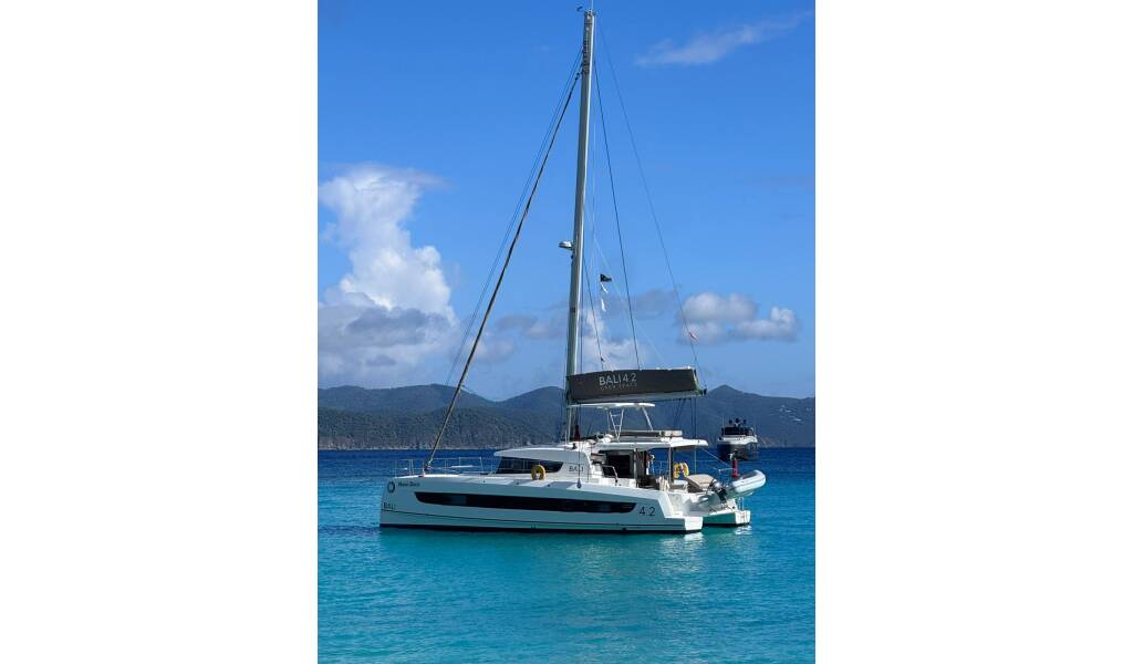 Katamaran Bali 4.2 Hard Deck, innebygd 2023 ligger i BVI, Hodge's Creek Marina, britiske Jomfruøyer, Jomfruøyene. Det har 4 hytter, imøtekomme 8 mennesker og har 4 toaletter. Sengetøy og kjøkkenutstyr er inkludert i prisen.
