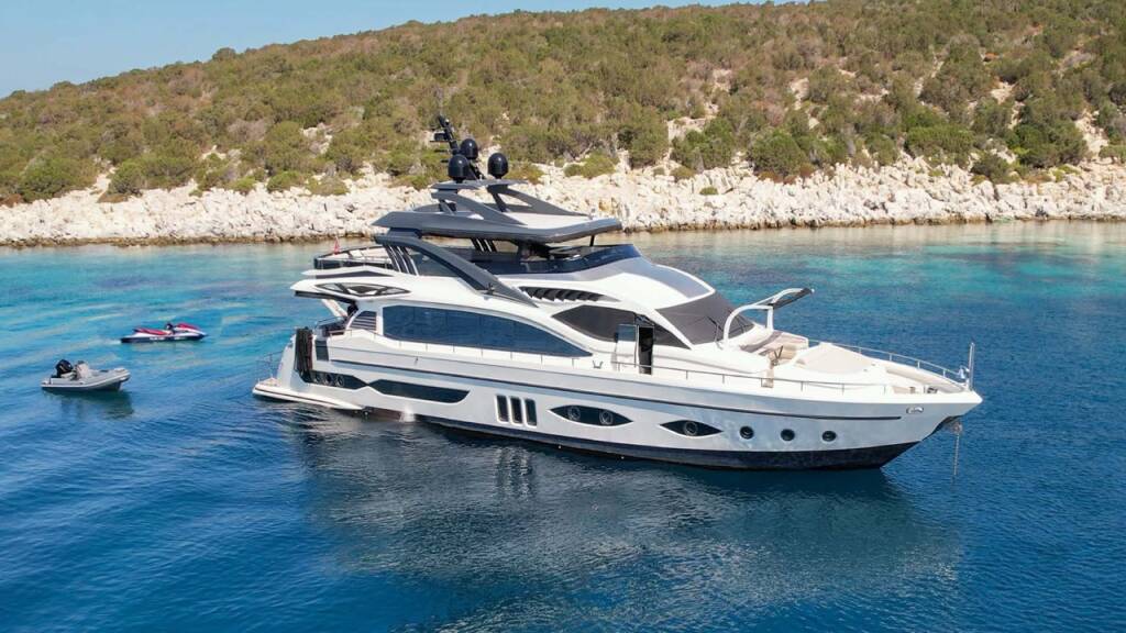 Luxus-Motoryacht MY Denden Den Den, innebygd 2023 ligger i Bodrum Harbour, Aegean, Tyrkia. Det har 2 + 2 hytter, imøtekomme 4 + 6 mennesker og har 2 + 2 toaletter. Sengetøy og kjøkkenutstyr er inkludert i prisen.