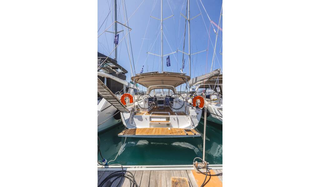 Segelyacht Oceanis 41.1 Peace, innebygd 2018 ligger i Lefkas main port, Ioniske øyer, Hellas. Det har 3 hytter, imøtekomme 6 + 1 mennesker og har 2 toaletter. Sengetøy og kjøkkenutstyr er inkludert i prisen.