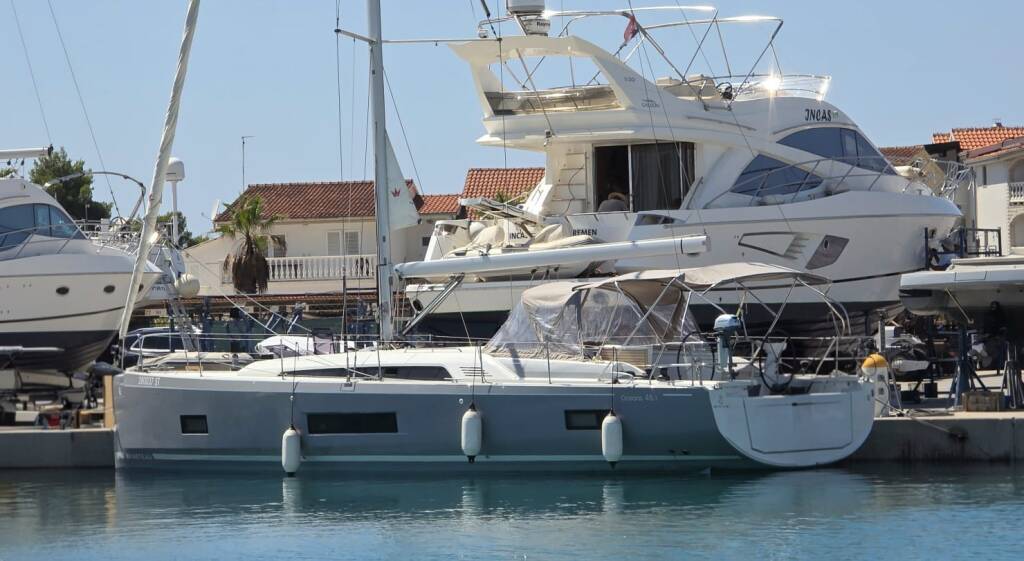 Segelyacht Oceanis 46.1 Anse Soleil, innebygd 2023 ligger i Marina Frapa, Rogoznica, Šibenik region, Kroatia. Det har 3 hytter, imøtekomme 6 mennesker og har 3 toaletter. Sengetøy og kjøkkenutstyr er inkludert i prisen.